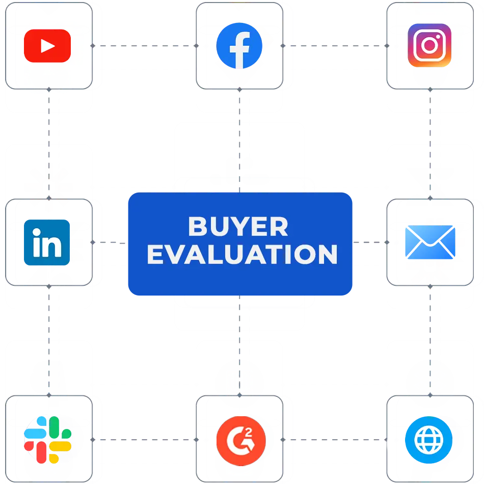 Evaluation happens across environments, not channels. Buyers form judgments through every digital surface they encounter, long before formal conversations begin
